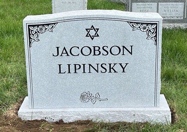 Southern Georgia Gray Granite family monument. Polished front, natural serpentine top and natural sides, sandblasted family name in panel, frosted star of David and double v-line border.