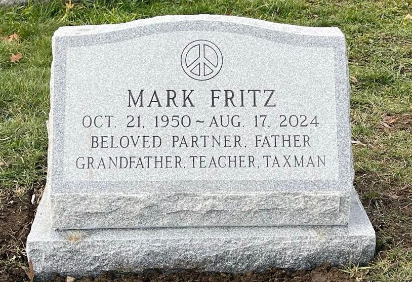 Georgia Gray Granite. Polished front and back, natural top and sides with a serpentine top. Sandblast lettering.Â