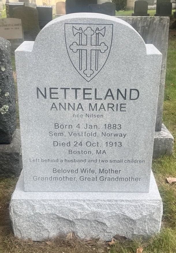 Barre Granite. Steeled front back and top, natural sides with a serpentine top. Sandblast lettering. Black and white photo etching.Â